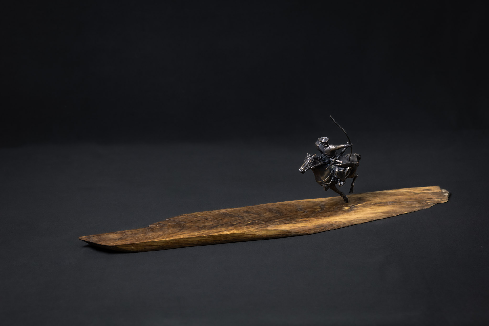 Patinated bronze, reclaimed oak board. Handcrafted kiri box included.
